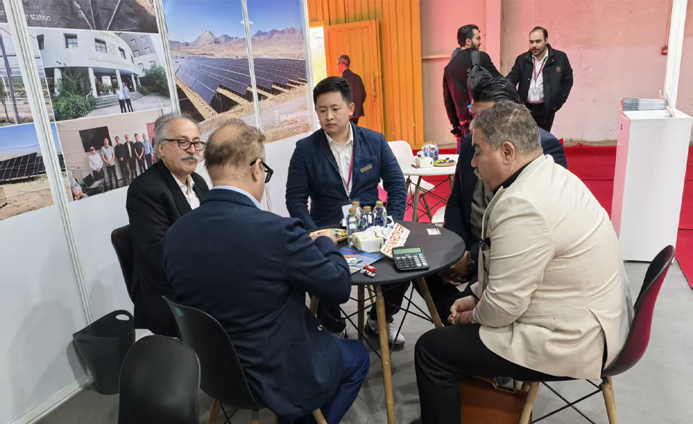 Teerã, Irã – O primeiro dia da Exposição de Energia do Irã testemunhou um notável aumento de interesse no estande da SUNROVER, que estava repleto de atividade, com um fluxo constante de visitantes e potenciais clientes que paravam para se informar sobre as ofertas inovadoras da empresa. Com o auxílio do Sr. Majid Hadizadeh, agente local dedicado da SUNROVER no Irã, e sua equipe dinâmica, diversos clientes profissionais locais receberam apresentações detalhadas e consultorias, sinalizando uma forte receptividade do mercado.